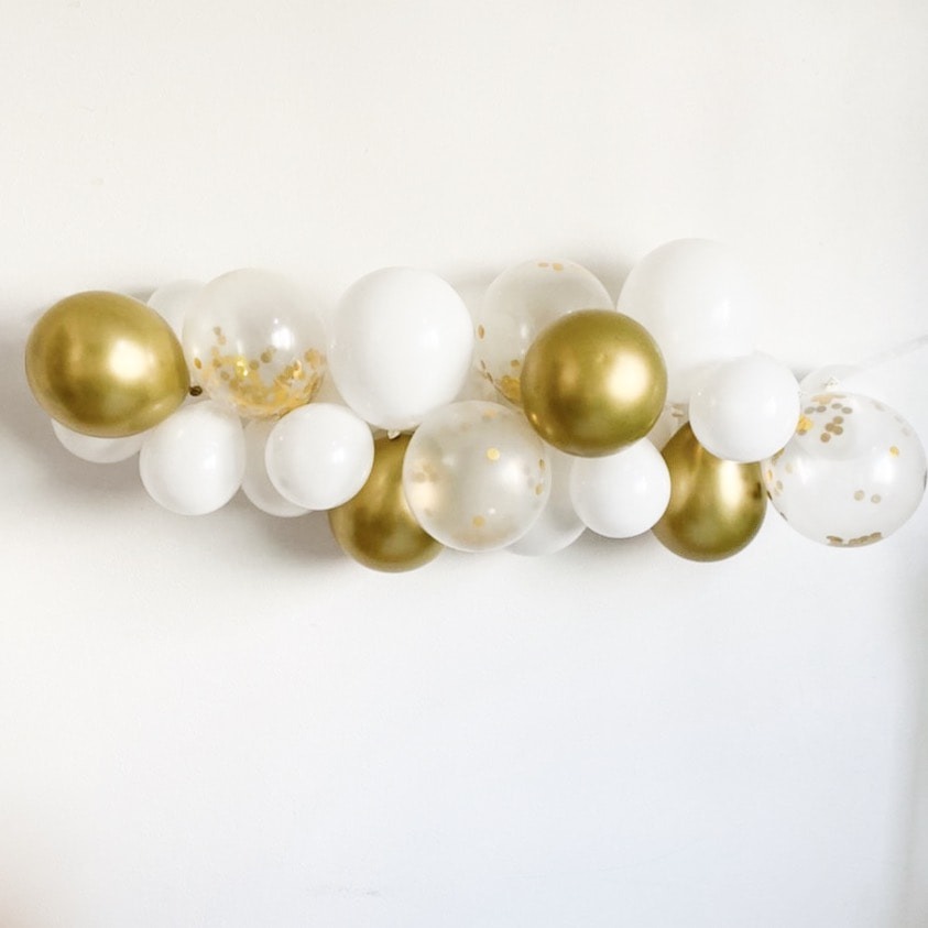 大小のサイズとマット・メタリック・コンフェッティ入りの素材の異なるバルーンで立体感がありボリューム満点!!