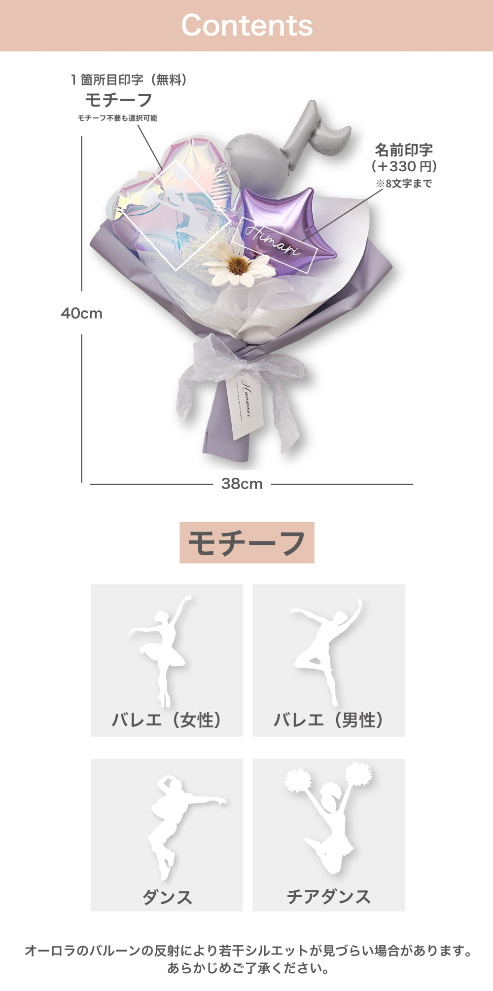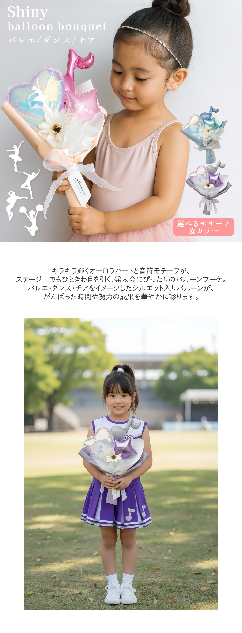 発表会 バルーンギフト シャイニー バルーンブーケ 選べるモチーフデザイン (ダンス チア バレエ) 音符 プチブーケ お祝い コンサート 誕生日 コンクール