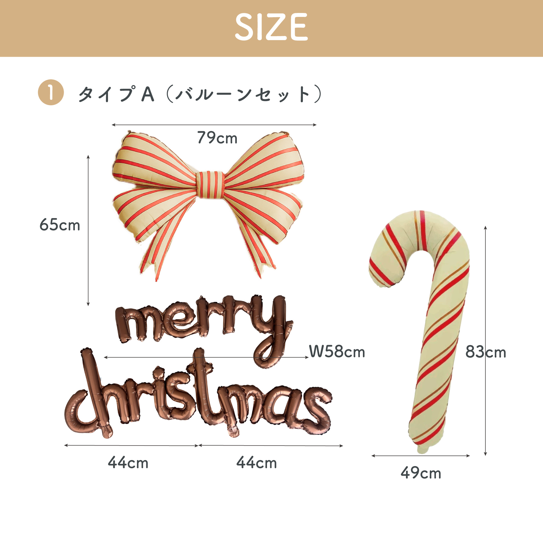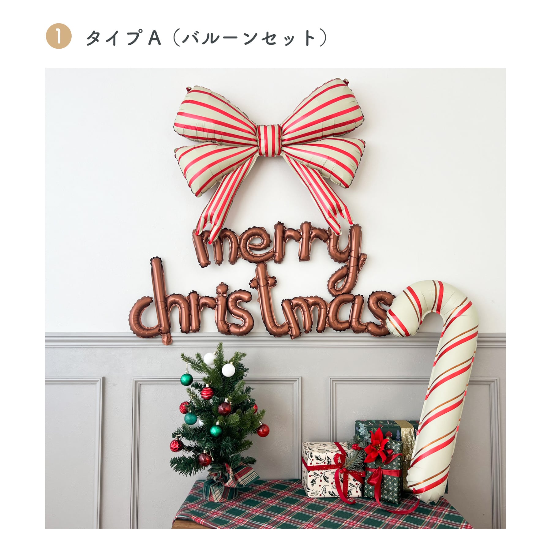 リボン・キャンディケーン・Merry chiristmas バルーンの3点セット(タイプA)