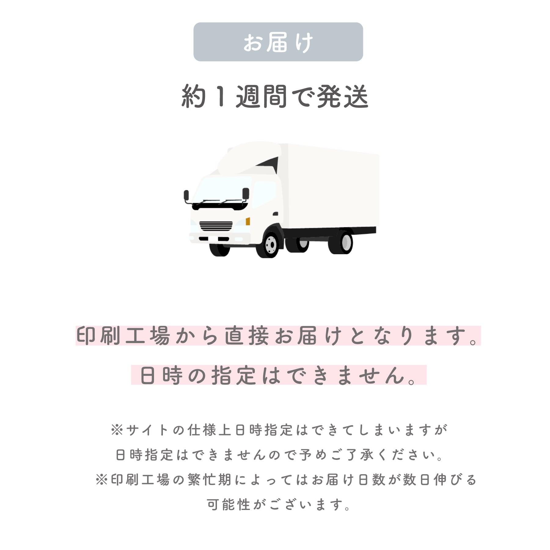 ・印刷工場直送品となります。ご注文確定から約1週間で工場から発送となります。ご使用までに余裕を持ってご注文ください。