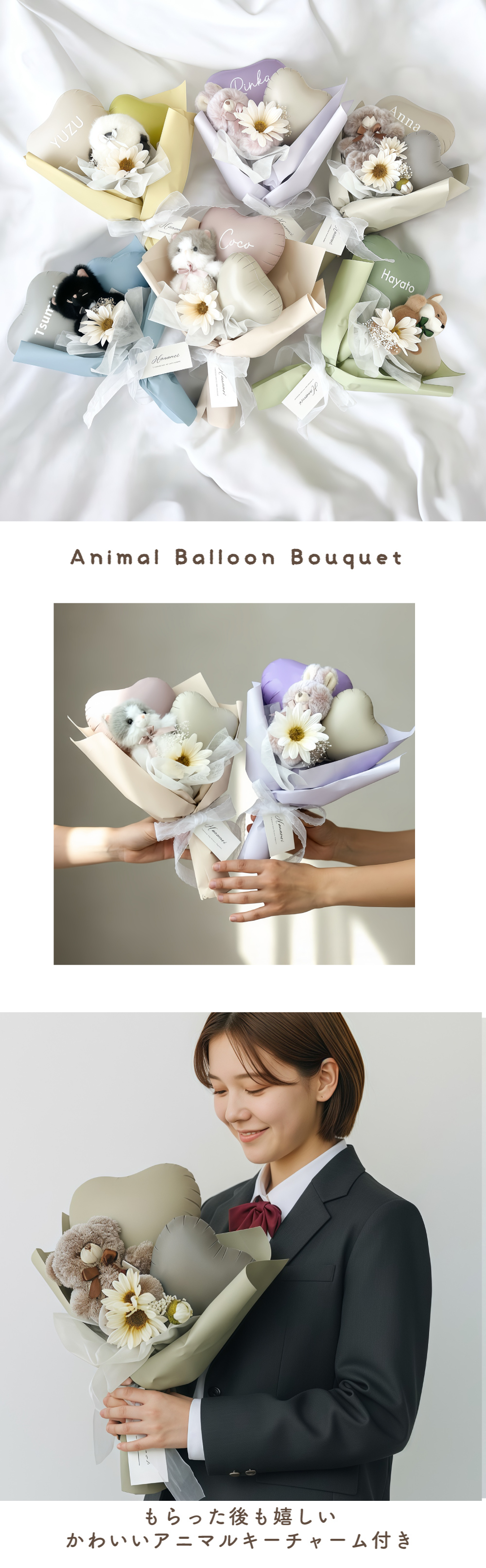 アニマルバルーンブーケ プチブーケ お祝い 退職 結婚 結婚祝い クリスマス プレゼント バルーンギフト 発表会 入園 お礼 記念日