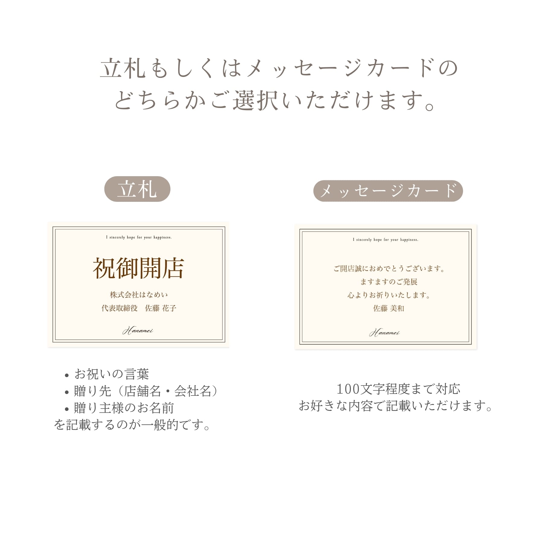 送り主様のお名前の記載をおすすめしています。