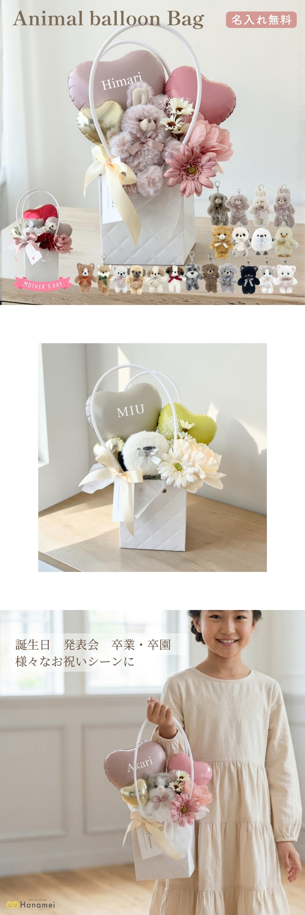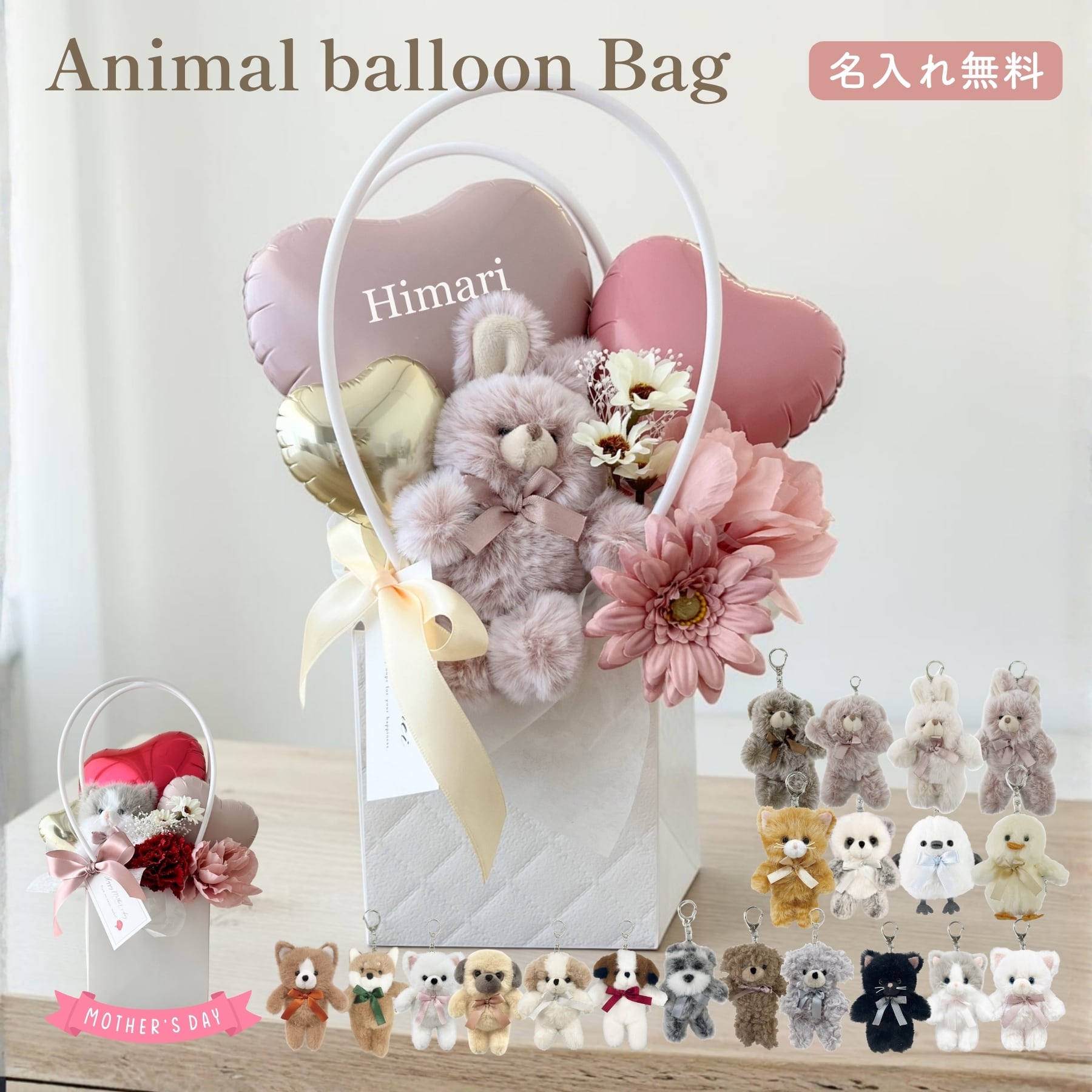 【アニマル バルーンバッグ】 置き型 母の日 結婚式 電報 開店祝い 祝電 バースデー 誕生日 バルーン電報 名入れ 結婚祝い 誕生日プレゼント おしゃれ お祝い 開業祝い 記念日 周年祝い メッセージ Hanamei