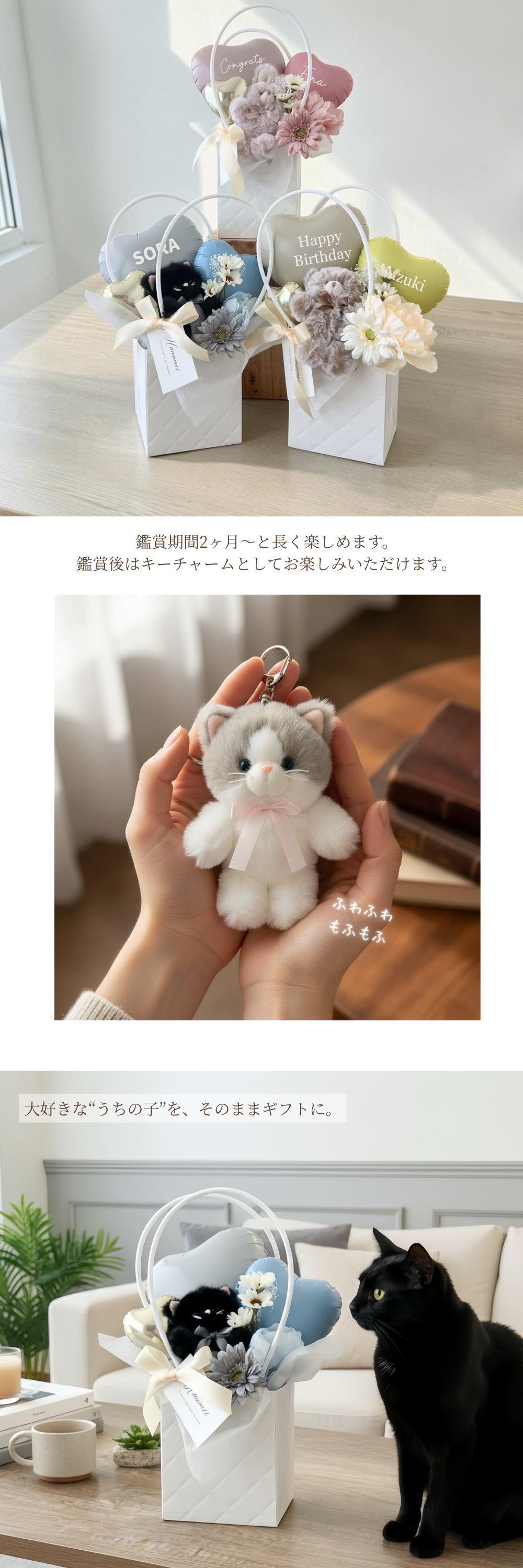 誕生日や発表会、出産祝いなどの様々なお祝いシーンでお選びいただけます。
