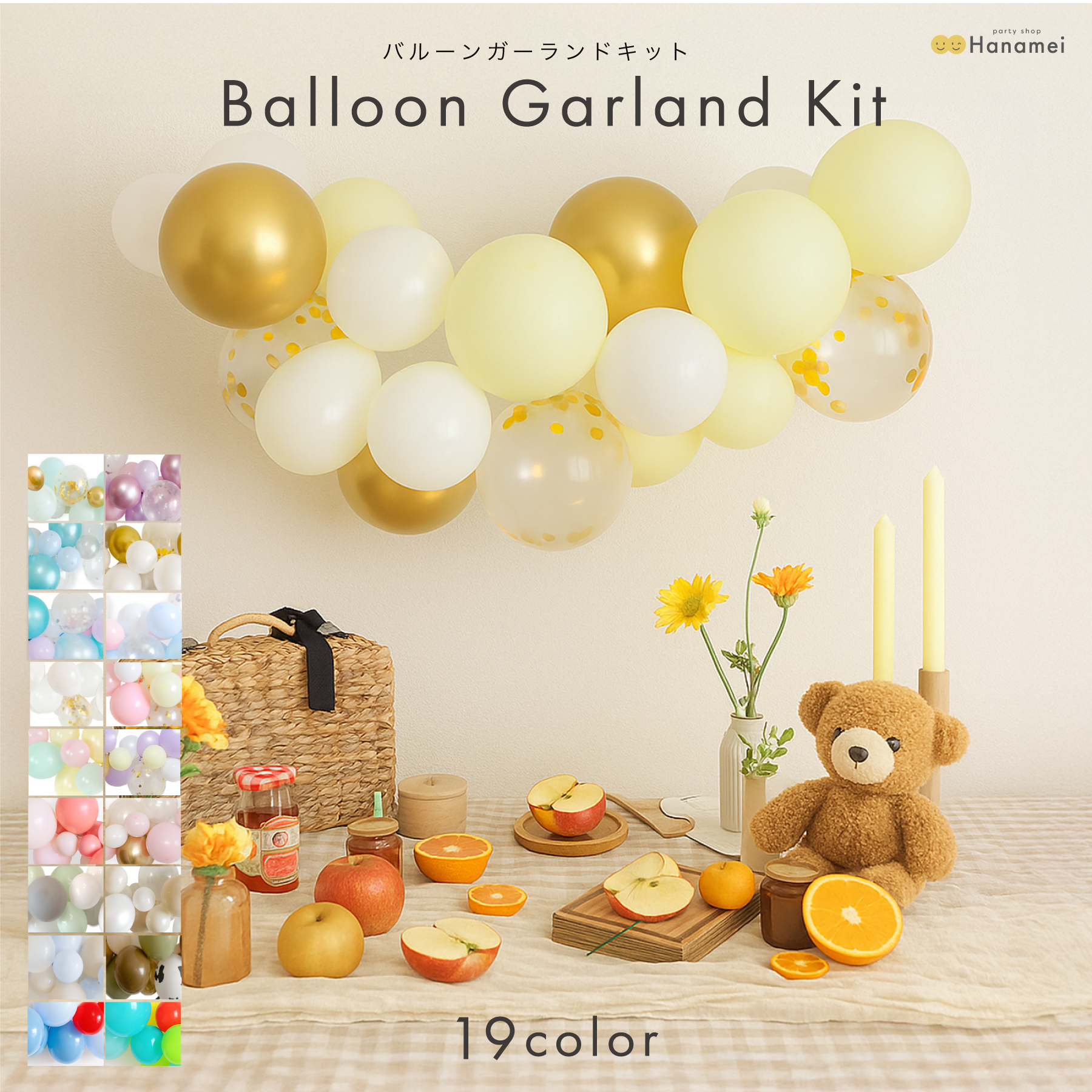 【送料無料】バルーンガーランドキット 全16カラー 誕生日 飾り付け 結婚式 装飾 ウェディング バルーン 風船 バースデー Hanamei 予備風船あり
