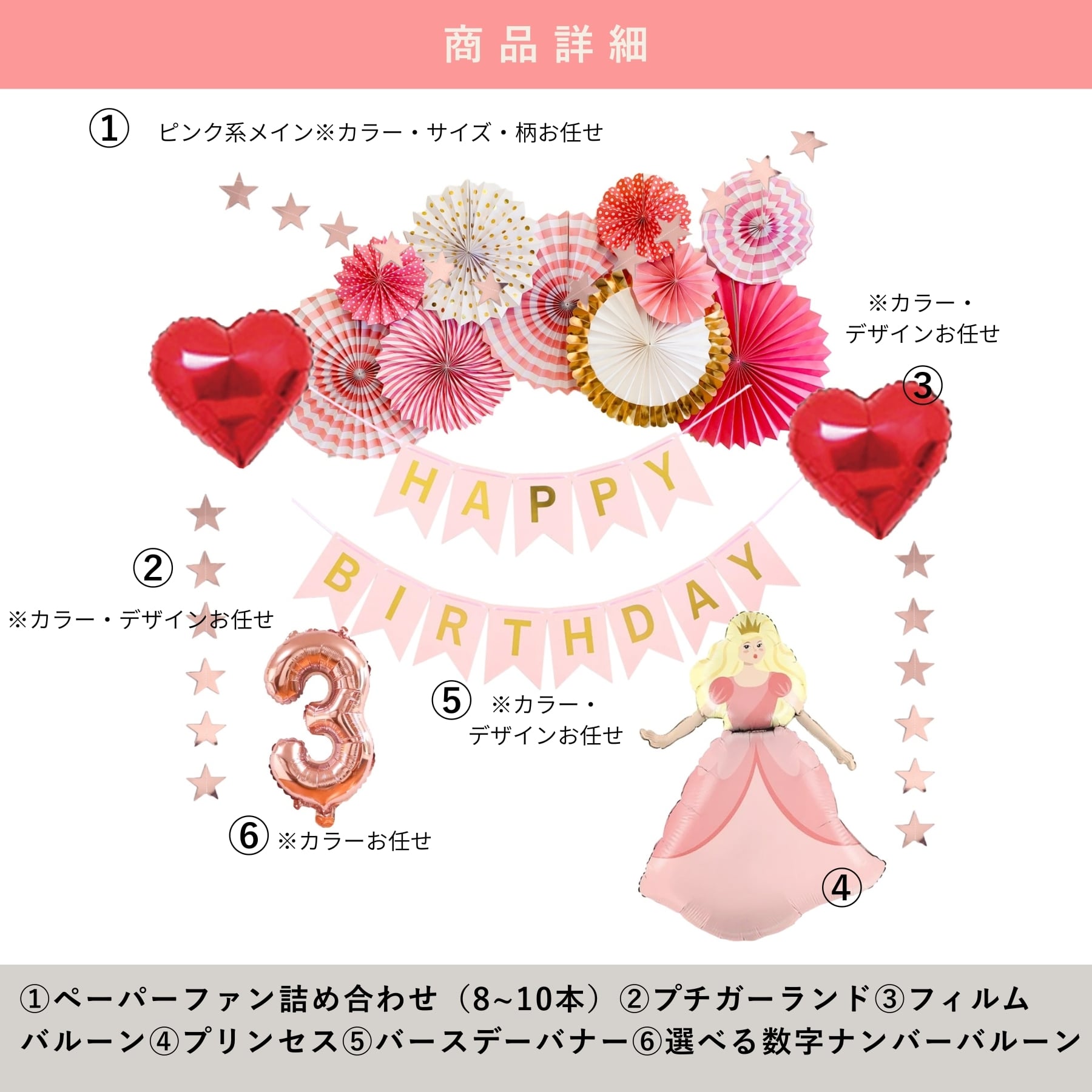 バースデーはもちろん、女子会やママ会、保育園や幼稚園の行事でも使える華やかなセットです!
