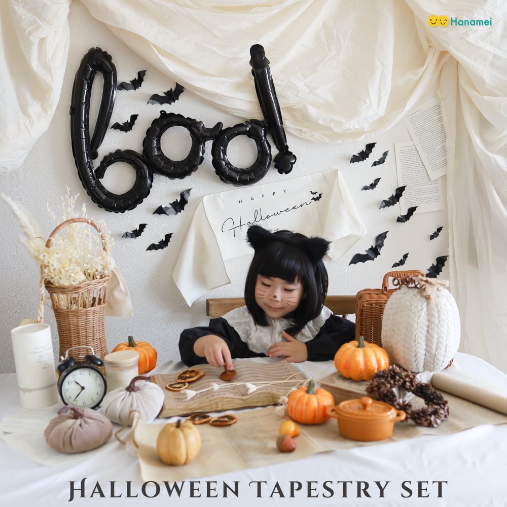 ハロウィンタペストリーとBooバルーン、コウモリステッカーがセットに!
