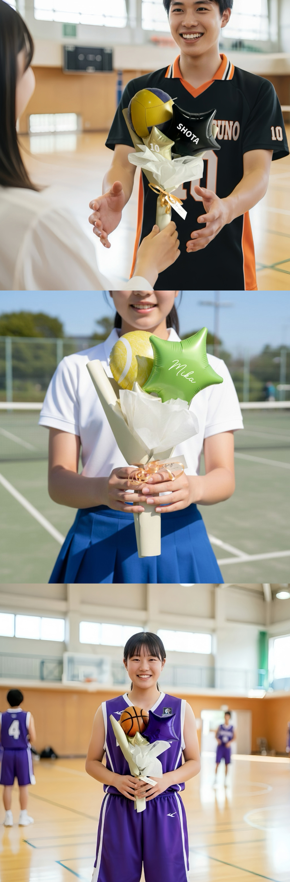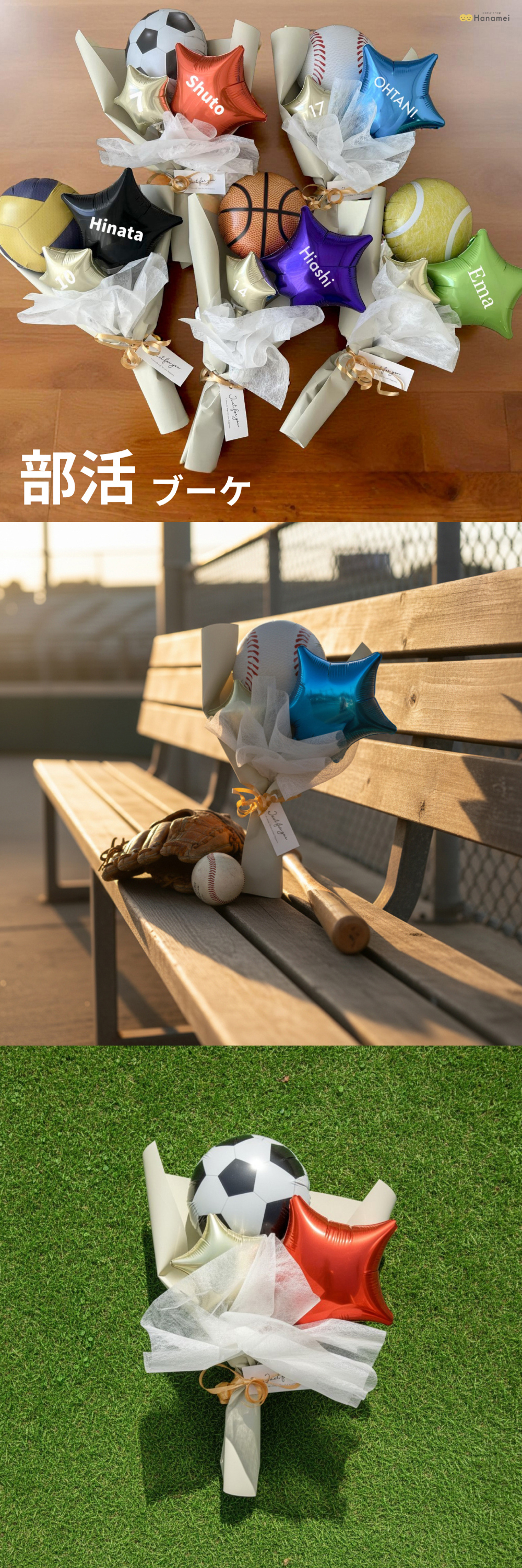 【名入れ無料】部活ブーケ バルーン 花束 卒業 部活 スポーツ バルーンブーケ サッカー バスケ 野球 テニス バレーボール先生 一本 一輪 引退 記念品 卒園 小学生 中学生 高校生 かわいい おしゃれ ミニ プチギフト