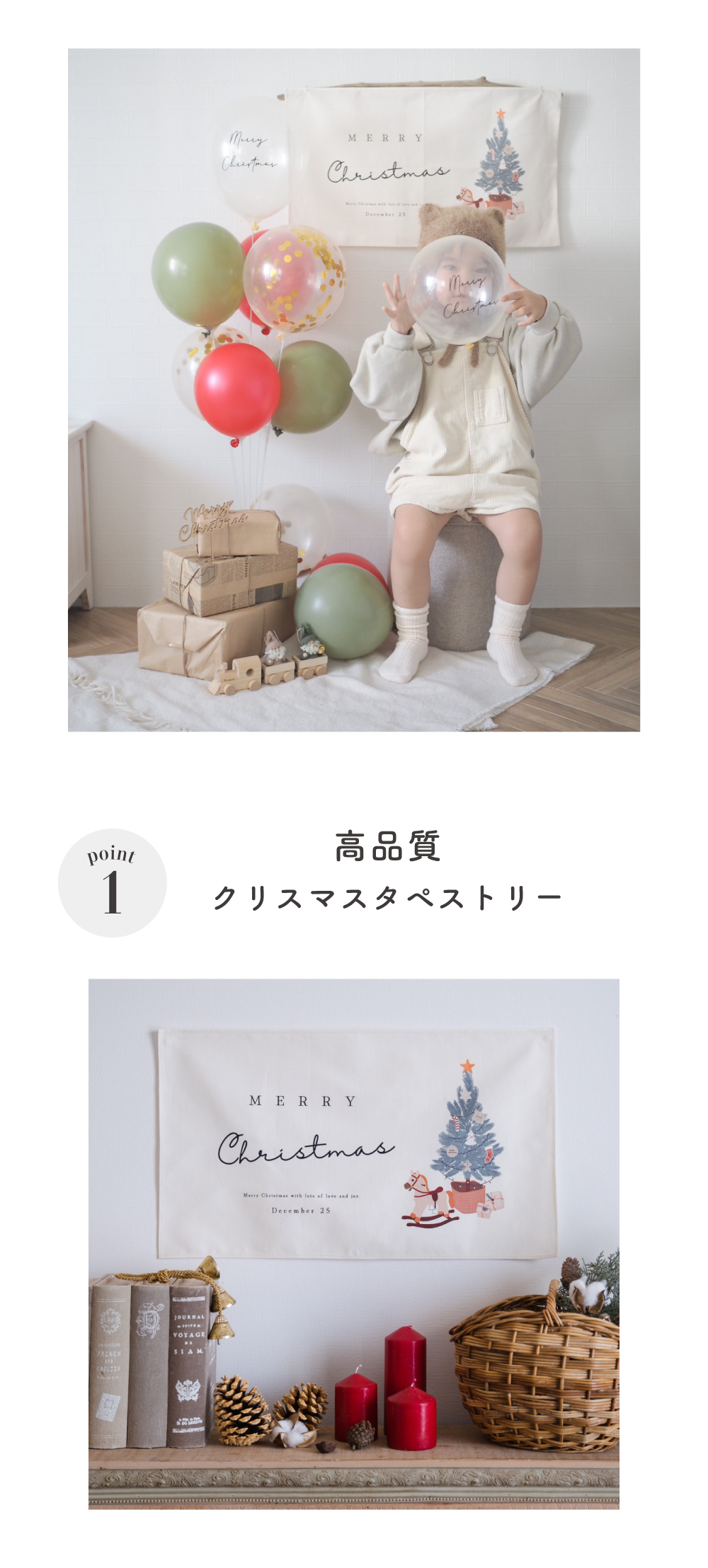 オリジナル クリスマス タペストリー セット  Merry Christmas バルーン 飾り付け ツリー  ナチュラル インテリア Hanamei