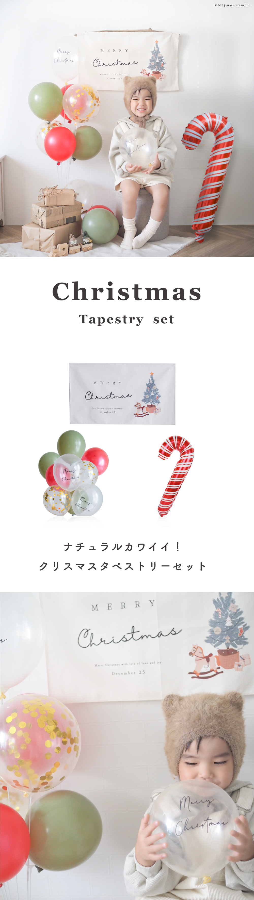 大人気のクリスマスタペストリーにクリスマスバルーンと、キャンディーケーンバルーンが入ったスペシャルセット!