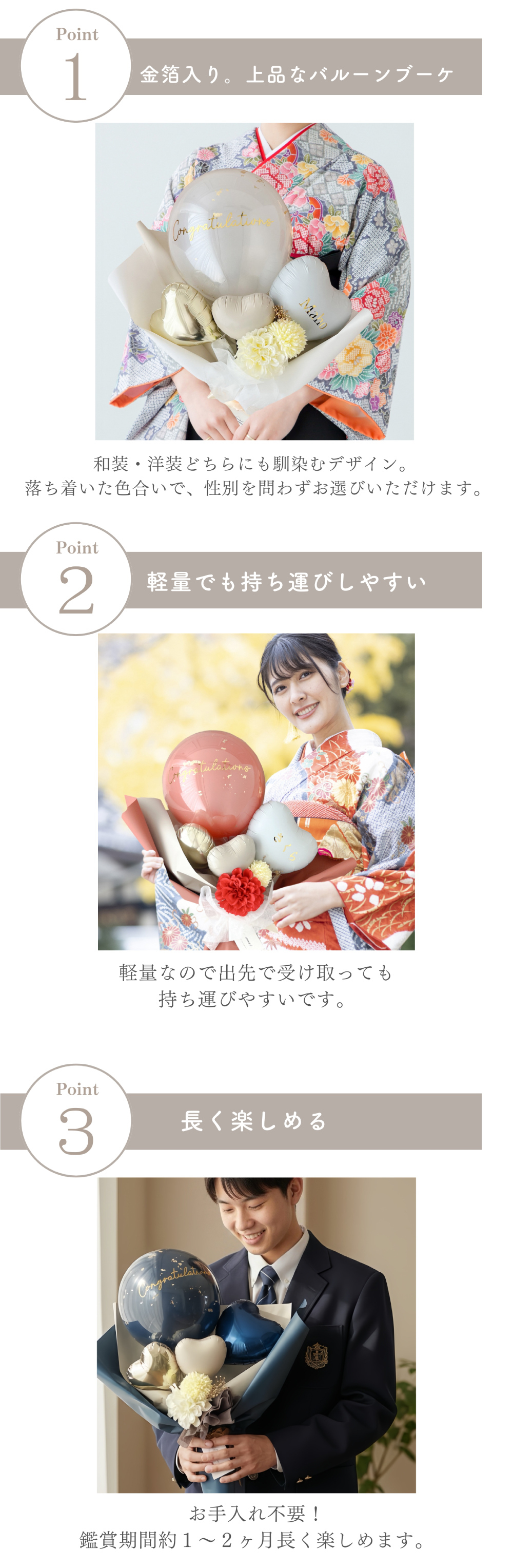 バルーンブーケは、水やりなどの手入れが不要で